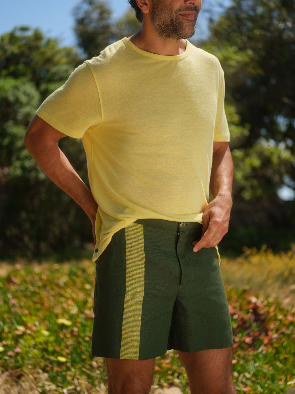 Butter yellow is the perfect shade for summer and this unisex linen knit T-shirt is made in Italy from 100% linen from Europe. Layer for a more tailored look but equally perfect to relax in at home. A sustainable choice, linen is a natural fabric with cooling and hypoallergenic properties.