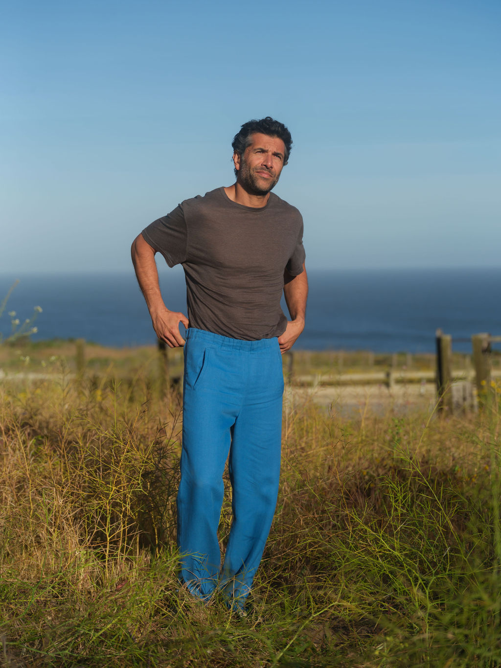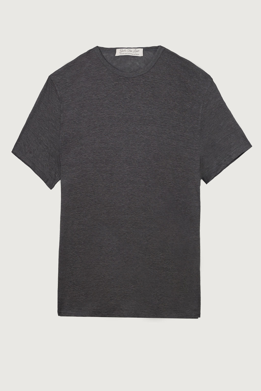 An everyday wardrobe staple made special. This unisex knit T-shirt is made from 100% European linen, tailored in Italy and designed for comfort in LA. A classic charcoal grey which is easy to co-ordinate and layer. The cool linen is breathable, natural and a sustainable choice.