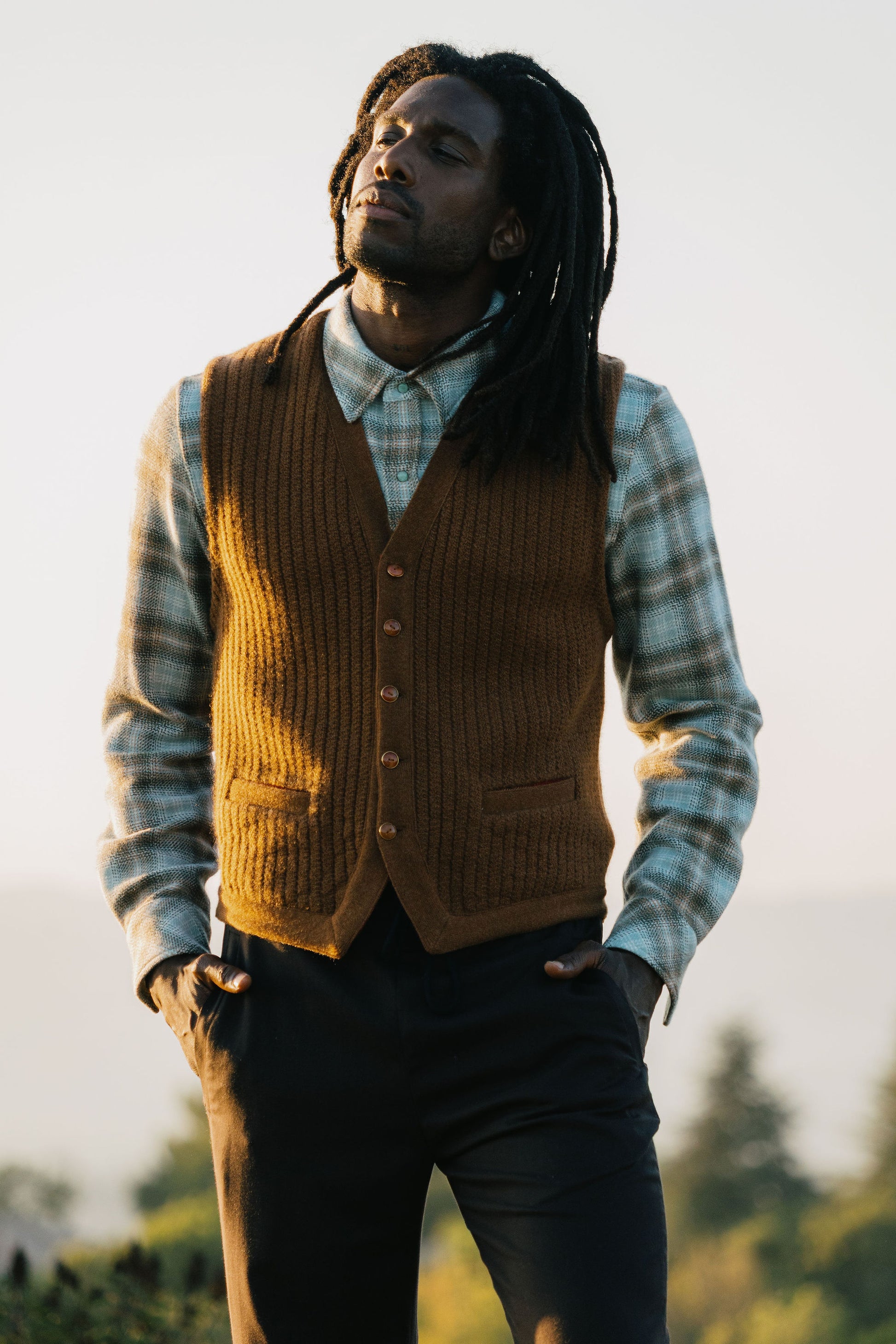 Knit with you in mind our 100% cashmere vest will wrap you in softness.The beautiful Italian tailoring with exquisite rib stitching, tartan hem and our signature green trim makes this piece a joy to own and wear. Adorned with a Carnelian gemstone known for courage and hand carved in India; revel in the warmth and comfort.