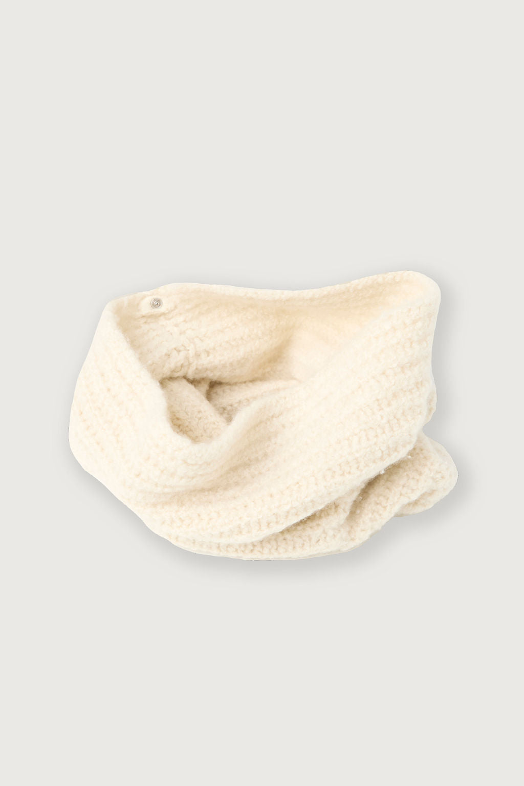 Our 100% Cashmere boucle circle scarf was designed with a cloud like hand-feel and embellished with Rose Quartz