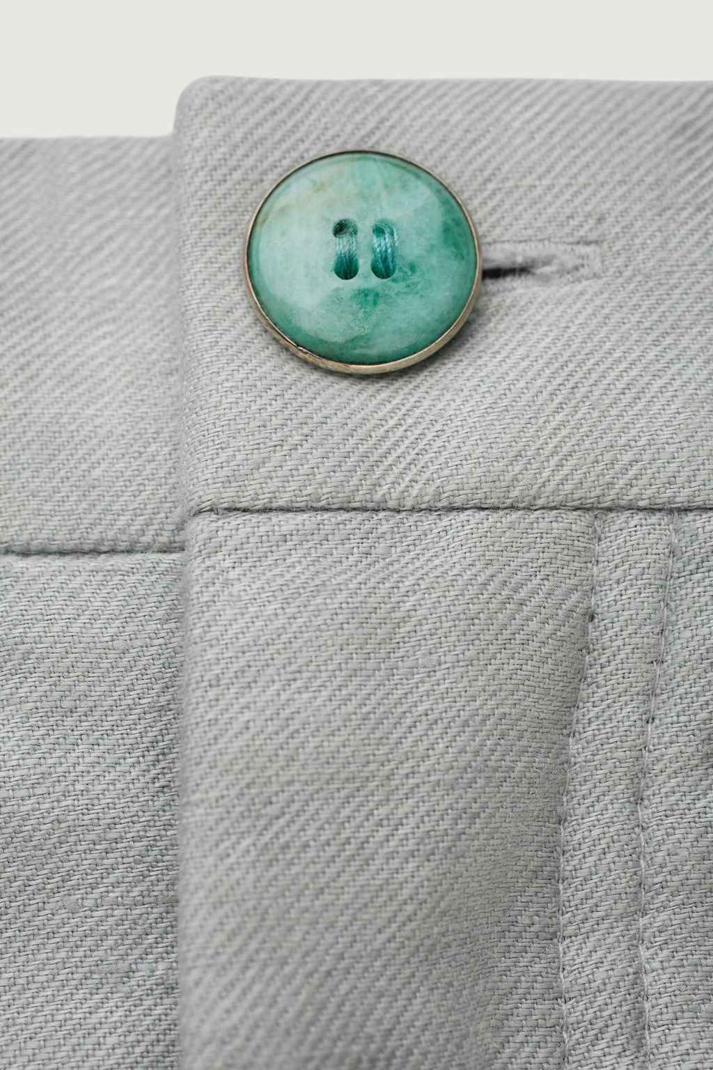 Made in Italy, these soft silver 100% linen unisex shorts feature an adjustable waist with a metal buckle and practical pockets.